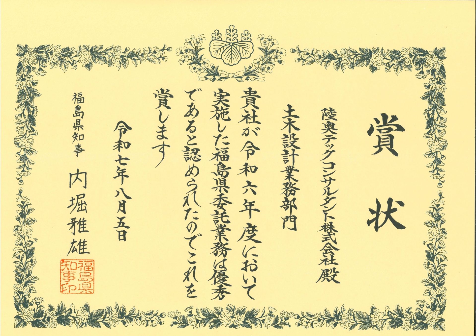 令和7年度 福島県優良土木・建築委託業務表彰を受賞しました