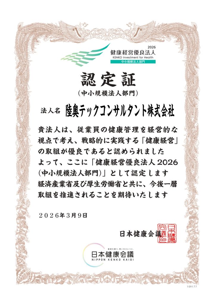 昨年に引き続き、「健康経営優良法人2026(中小規模法人部門)」に認定されました。